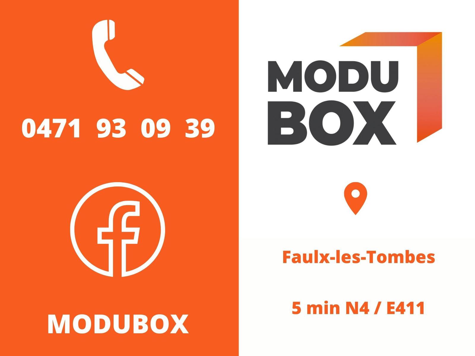 ModuBox propose une solution de stockage à proximité des grands axes. Particuliers ou professionnels, nous avons la solution de stockage adaptée à vos besoins. ModuBox entrepose vos biens dans des conditions sécurisées optimales : badges, caméra de surveillance, accès limités. Tarifs et superficies modulables, contactez-nous ! Professionnels : • Vous avez simplement besoin d’un entreposage de stocks réguliers ou d’articles saisonniers et de matériels que vous n’utilisez pas régulièrement ; • Vous transférez ou rénovez vos bureaux et vous avez besoin d’une solution temporaire ; • Les archives (comptabilité, juridique, social etc…), que vous devez légalement conserver dans un endroit sûr pendant plusieurs années vous envahissent ; • ... Particuliers • Vous faites des travaux de rénovation et avez besoin d’un stockage temporaire pendant quelques mois ; • Vous réemménagez et manquez de place ; • Un voyage ou un déménagement à l’étranger ; • Je vide mon appartement pendant 6 mois ; • Étudiant, je libère mon Kot pour l’été ; • Séparation, divorce…