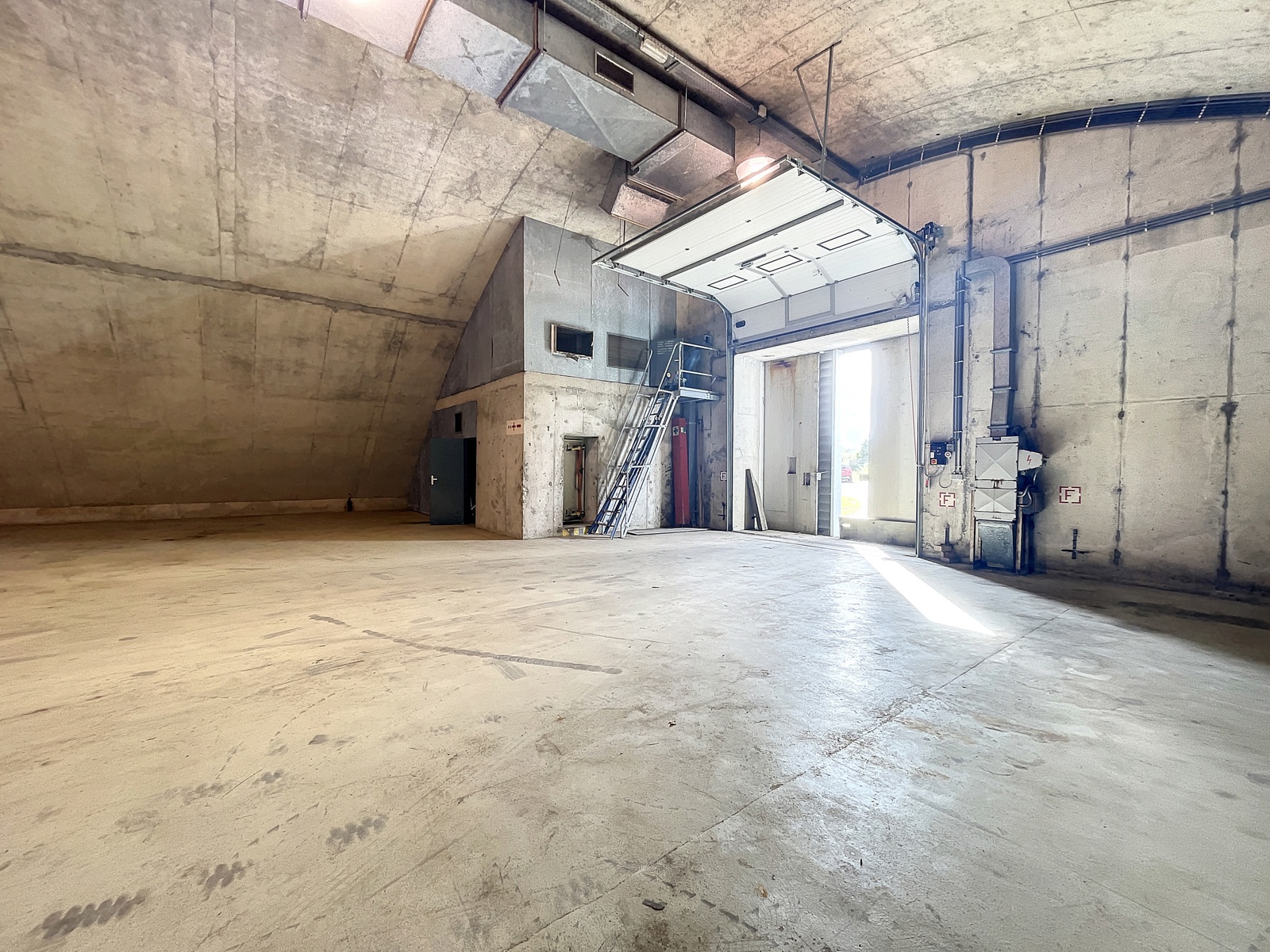 possibilité de division du bien en deux lots (répartition surface à définir) - A découvrir bien rare sur le marché industriel. Ancien bunker, entièrement réhabilité en zone de stockage et entreposage. Le bien se situe dans le PAE du Courtil, commune de Gouvy en province de Luxembourg. Idéalement situé à deux pas de la E25 et non loin de la frontière luxembourgeoise. Ce bien d'exception vous conviendra idéalement afin de pouvoir stocker vos marchandises ou toutes autres biens de valeurs. En effet, le bunker est entièrement sécurisé et en béton armé. Il bénéficie de deux portes sectionnelles permettant la livraison par camion à l'intérieur en toute discrétion ainsi que de portes blindés . Vous profiterez également, si besoin, d'espaces extérieurs servant de parking sur une parcelle totale de 39ares 44centiares. Installation électrique triphasé. Prix de location de 3.600€/mois + provision P.I - possibilité de louer avec option d'achat. Infos et visites auprès de l'agence.