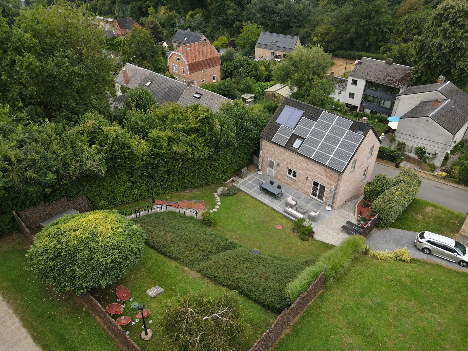 VENDUE EN 1 VISITE ! VENDUE EN 1 VISITE ! À vendre sur les hauteurs de Marche-les-Dames, dans un quartier résidentiel calme et verdoyant, cette maison bel-étage construite en 2009 et implantée sur une parcelle de 5 ares 55 centiares. Ce bien, offrant tout le confort moderne, dispose de 4 à 5 chambres ainsi que d’un magnifique jardin arboré et aménagé avec terrasse et abris de jardin. Le rez-de-chaussée comprend un hall d’entrée, un garage avec porte automatique et cave de rangement, ainsi qu’un bureau pouvant également servir de chambre. Au premier étage, vous découvrirez un vaste séjour lumineux avec salle à manger donnant accès directement au jardin, une cuisine entièrement équipée, un WC séparé ainsi qu’une chambre supplémentaire. Le second étage propose trois chambres dont une suite parentale avec dressing, ainsi qu’une salle de bains complète avec baignoire, douche et WC. À l’extérieur, vous profiterez d’un jardin joliment aménagé, arboré et orienté sud-ouest, véritable espace de détente. Sur le plan technique, la maison bénéficie d’un PEB B, de 17 panneaux photovoltaïques, de panneaux solaires, châssis PVC, d’une citerne d’eau de pluie 5200L, d’un chauffage central au mazout et d’une installation électrique conforme. Le bien est actuellement occupé par les propriétaires et sera libre le 11 mai 2026. Faire offre à partir de 425.000 € (sous réserve d’acceptation des propriétaires). Infos et visites sur demande auprès de l’agence.