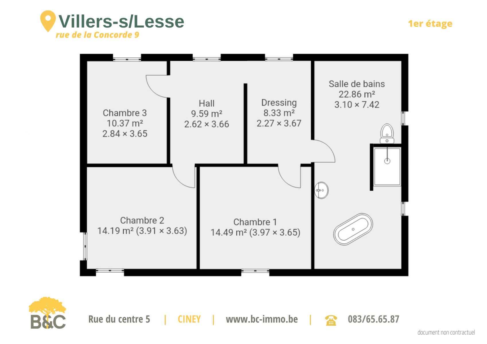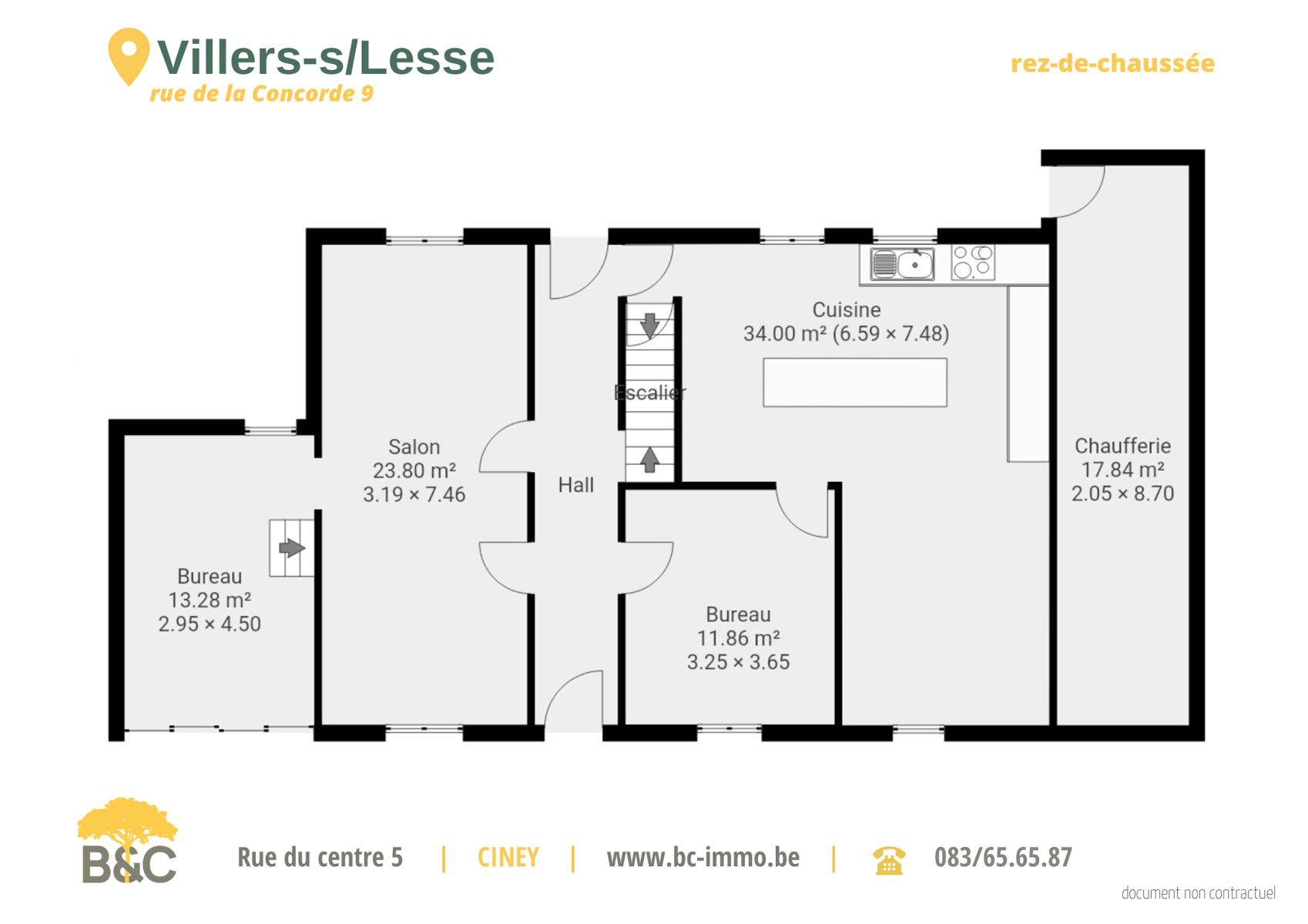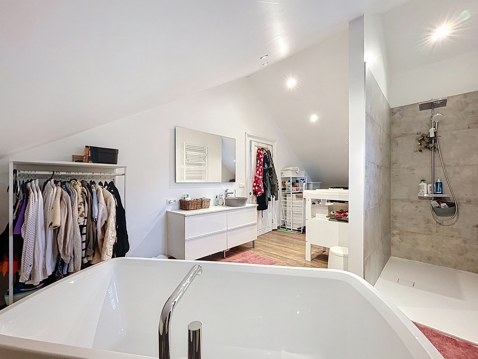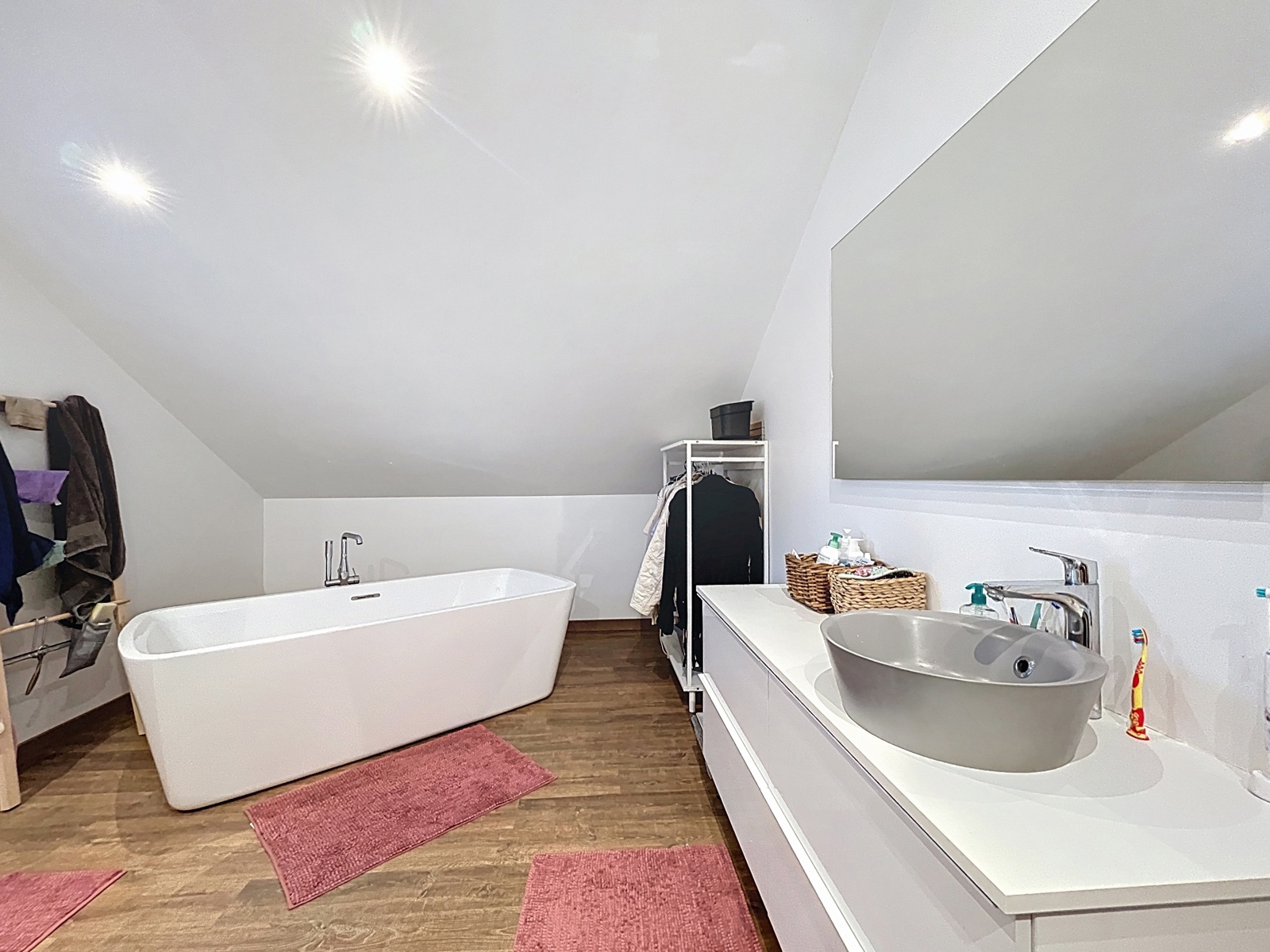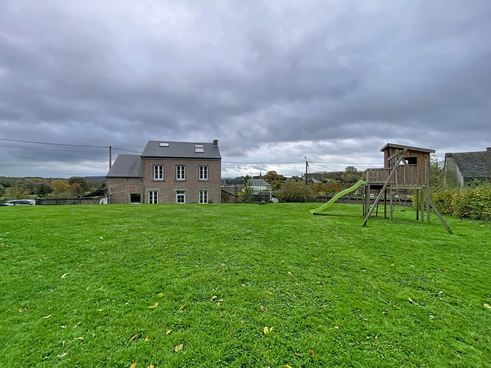 Située dans le charmant village de Villers-sur-Lesse, cette maison de caractère rénovée vous séduira par son cachet, son confort moderne et sa situation idéale, à proximité immédiate de l’E411. Elle offre une superficie habitable d’environ 180 m² et se compose au rez-de-chaussée d’un hall d’entrée, d’un agréable séjour lumineux, d'une cuisine entièrement équipée et d’un bureau idéal pour le télétravail. À l’étage, vous trouverez trois belles chambres, un dressing et une salle de bains. Le grenier, accessible par un escalier fixe, est aisément aménageable selon vos besoins (chambre parentale, salle de jeux, espace polyvalent…). À l’extérieur, vous profiterez d’un agréable terrain de ± 14 ares, parfaitement orienté, offrant calme et verdure. Côté technique : rénovation en 2022, toiture neuve et isolée, électricité conforme, chauffage central au gaz, châssis double vitrage et PEB C. Une maison prête à accueillir votre famille dans un cadre paisible et recherché ! Faire offre à partir de 445 000 € (sous réserve d’acceptation du propriétaire).