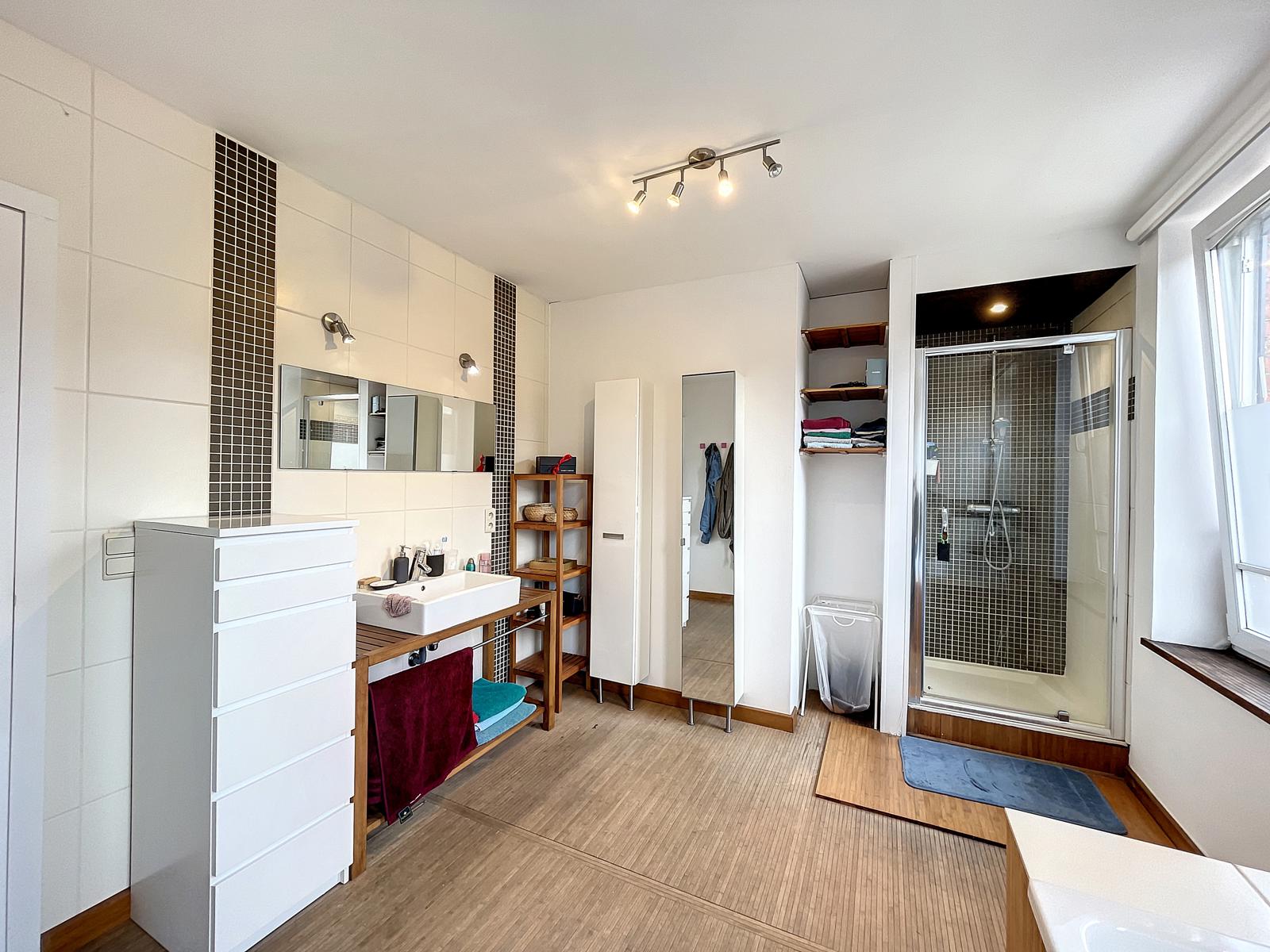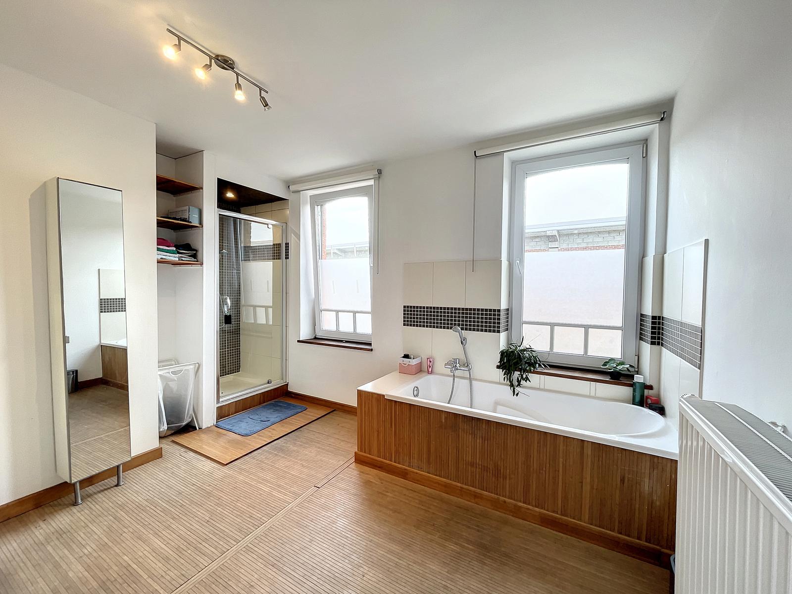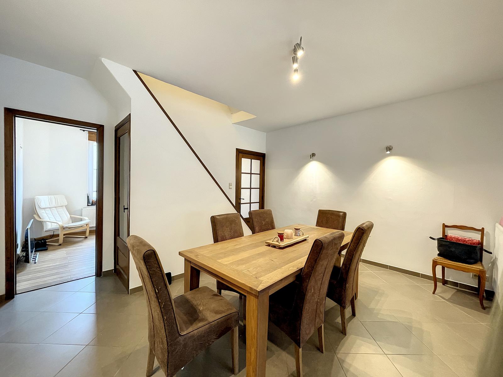 A découvrir dans le centre de Ciney, cette coquette maison de ville aux volumes impressionnants ! Le bien se compose comme suit : Un hall d'entrée - une salle à manger - un salon - une cuisine semi ouverte donnant accès à la terrasse et au jardin. Au 1er étage : un bureau - une chambre - un wc individuel et une salle de bains (baignoire - douche - meuble évier). Au deuxième étage vous retrouverez une grande chambre séparée en deux et vous donnant la possibilité d'en créer une troisième chambre ! Vous bénéficierez également d'une cave avec coin chaufferie (chaudière mazout) et buanderie ainsi que d'une terrasse à l'abris des regards et d'un jardin et le tout à deux pas de toutes les commodités ! Electricité conforme - Maison actuellement loué. Faire offre à partir de 299 000€ (sous réserve d'acceptation du propriétaire). Infos et visites auprès de l'agence au 083 65 65 87.